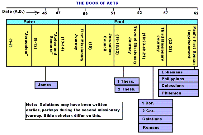 We will now take a more detailed look at the NT books that were written during the time of the book of Acts. The first part of the book of Acts has Peter as the main character (chapters 1-12). The last part of the book of Acts has Paul as the main character (chapters 13-28).