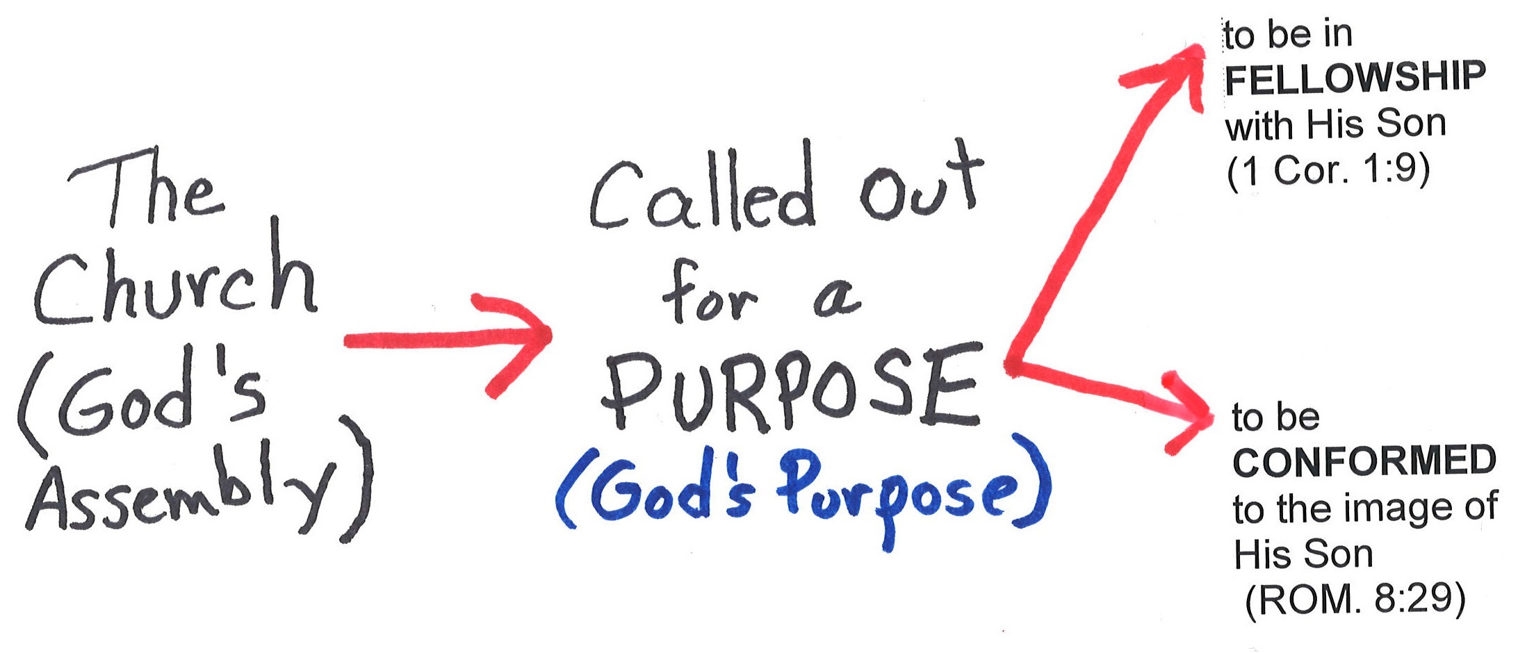 The word "church" is the translation of the Greek word EKKLĒSIA which is really made up of two Greek words: 1) EK which means "out, out of " and 2) KLĒSIS which means "a calling" (from the verb KALEŌ which means "to call"). If we put these two meanings together we have "a calling out." Therefore the term "church" (EKKLĒSIA) means "an assembly of called-out ones, a called-out assembly."