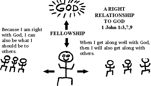 Divisions come about because of MAN'S FAILURE TO STAY RIGHT WITH GOD. If men would keep in a right relationship with God then they would also be in a right relationship with each other and there would be a UNITY and a ONENESS. In order for men to have fellowship with each other, who must they first have fellowship with (1 John 1:3)? _____________________________________________________ When people are not right with God they will not be right with other people. The VERTICAL RELATIONSHIP (with God) determines the HORIZONTAL RELATIONSHIP (with others):