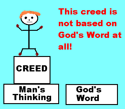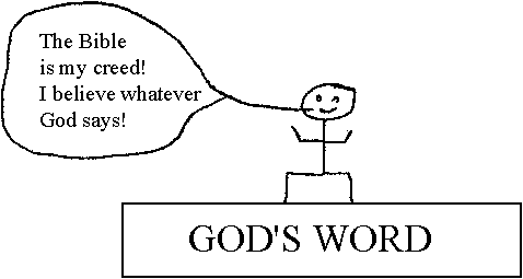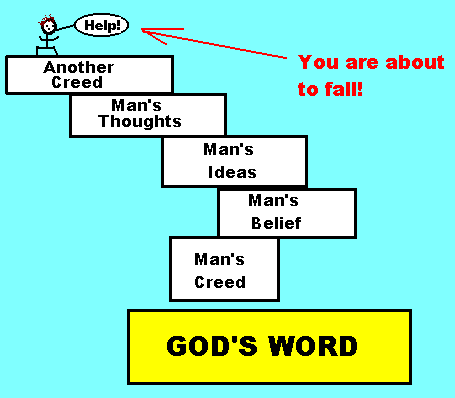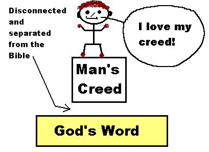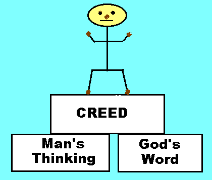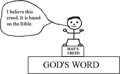 Notice how this man has taken one step away from God's Word. The creed is based on God's Word, which is good, but the man is now standing on the creed. He is only indirectly standing on God's Word. A creed should never replace the Bible.