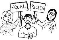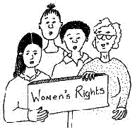 "I feel enslaved by all my domestic duties (cooking, washing, ironing, cleaning, etc.)--let me get out of this house!" "I want equal employment opportunities--I deserve the same kind of jobs men are getting!" "For a woman to be just a housewife seems unfair. I want my husband to take care of the children as much as I do." "I demand equal pay for equal work--if I hold the same position as a certain man, then I should get the same pay he gets." "I want the right to be ordained into the ministry and to be a pastor." "I demand my rights to have an abortion." "Im a good ballplayer, so there is no reason why I should not play on this all-male team!" "Women should have the same kind of jobs that men have, including holding public office, being President of the United States, being a military general, or anything else we want to do, etc."