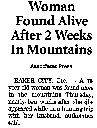 How should we understand this? We understand it literally, according to the normal meaning of words. It means just what it says. The woman was 76 years old, not 34. She was found alive, not dead. She was found in the mountains, not in a desert. She was found nearly two weeks, not two years, after she disappeared. She was on a hunting trip, not a fishing trip. Her husband was with her on this trip, not her brother. The words of this article are understood in their normal and natural sense.