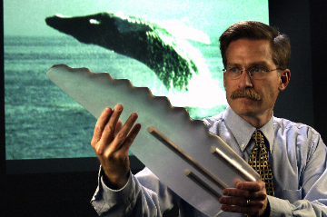 learn how to manufacture certain products. Although written by an evolutionist, the article speaks of the "brilliant design" found in nature (p. 75). It begs the question, "How can there be brilliant design without a designer?" How can blind chance, apart from any intelligence, result in brilliant design? How can random processes "create" such brilliantly designed animals and plants? Brilliant scientists are developing amazing products, not based on their own creative ideas or inventions, but by copying complex designs found in the animal and plant kingdoms. Here are some fascinating examples: 1) The boxfish has a sleek design. The contours of his body allow him to swim up to six body lengths per second. The boxfish's surprisingly streamlined form inspired Mercedes-Benz's bionic concept car which is able to perform as high as 70 miles per gallon. Here is the example of a modern car copied after the pattern of a small fish which evolutionists claim originated apart from any intelligent design (pages 69-71). 2) The thorny devil lizard of the arid Australian desert is able to convey water through its body to its mouth. All this creature needs to do is find some moist sand, and the moisture will be wicked up the lizard's leg and will make its way to its mouth. Scientists hope to make a thorny-devil-inspired device that will help people collect lifesaving water in the desert (pages 72-74). 3) Iridescence in butterflies and beetles and antireflective coatings in moth eyes have resulted in studies that have led to brighter screens for cellular phones and even an anticounterfeiting technique (page 74). 4) Engineers are pondering the bumps on the leading edges of humpback whale flukes to learn how to make airplane wings for more agile flight (page 74). In fact, dramatic improvements in airfoil design (design of fan blades, etc.) have been inspired by the unusual geometry of the Humpback’s pectoral fins.