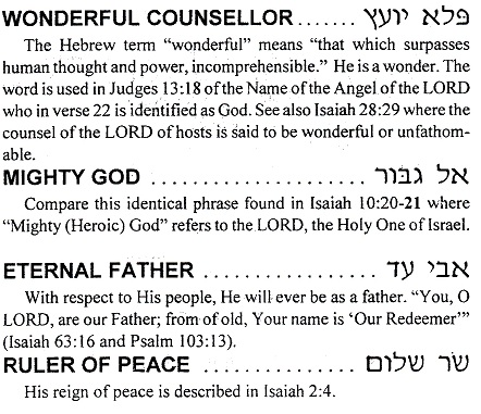 In Isaiah 9:5 (9:6 in most English versions) the male child who is born is called the "the Mighty God" and "peaceable ruler." He will trace His human descent from David (Isaiah 9:6; 9:7 in most English versions).