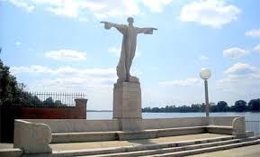 The Titanic Memorial is a granite statue in southwest Washington, D.C., that honors the men who gave their lives so that women and children might be saved during the RMS Titanic disaster. The thirteen-foot-tall figure is of a partly clad male figure with arms outstretched standing on a square base. The base is flanked by a square exedra, created by Henry Bacon, that encloses a small raised platform. The statue was erected by the Women's Titanic Memorial Association.