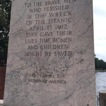 When I heard of the Titanic disaster as a child I was told first and foremost that men had given up their places on lifeboats to women and children and gone to their deaths in acts of great gallantry. At the opening of the 20th Century there had been talk about the passing of the age of chivalry, but the figures for survivors of Titanic are still startling. If there are too many Astors and Guggenheims among the luxury passengers for your taste, let’s take second class. Some 81 percent of the women and children in second class survived as opposed to only ten percent of the men. In steerage where access to the boat deck was difficult, 47 percent of the women and children were saved as opposed to only 14 percent of the men. In first class among some of the world’s wealthiest people—exploiters of the poor and weak in Marxist analysis—94 percent of the women and children were saved, while their men drowned in the icy black waters of the North Atlantic. To this day, the most prominent humane characteristic of this great maritime tragedy is the men stepping back and letting not only their wives and daughters, but other men’s wives and daughters, take their places in the lifeboats. It’s hard to imagine this today.... Two weeks after the Titanic sank, Nellie Taft, the President’s wife gave the first dollar toward a dollar-per-woman fund honoring the men of Titanic. The resulting monument is an 18-foot statue of a half-clad male posed on a 30-foot pedestal on which is engraved: "To the brave men of Titanic who gave their lives that women and children might be saved." It can still be seen in Washington across from East Potomac Park. These days no one visits it. —By Richard Grenier in the Washington Times, 2/13/98.