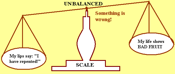 My fruits do not weigh as much as my (professed) repentance! My lips say one thing, but my life says the opposite (see Titus 1:16; 1 John 2:4; 2:9).