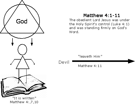 But this is not what the Bible teaches. The Lord Jesus did not use His supernatural and divine powers to defeat the devil. Rather, He faced Satan as a man (compare Jesus quote in Matthew 4:4, "man shall not live by bread alone"), and this gives great hope and encouragement to every believer. We can win the victory in the same way that Jesus won the victory! We can resist Satan just as Christ did! We can do exactly what He did! Yes, the temptation of Christ was a wonderful demonstration that man, walking in the Spirit, using and relying upon the Word of God, is more than a match for Satan!