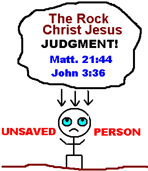Either you are on the Rock (faith) or the Rock is on you (judgment)! Where are you in relationship to this Rock? You can trip and fall on this Stone and be broken (stumblingblock--see Matthew 21:44; 1 Corinthians 1:23; 1 Peter 2:8; Isaiah 8:14-15); you can let it fall on you and be pulverized by it (Matthew 21:44); or you can plant your feet on its firm foundation and let it support you (1 Peter 2:6)! Dont reject Gods Rock! RELY and REST upon it!