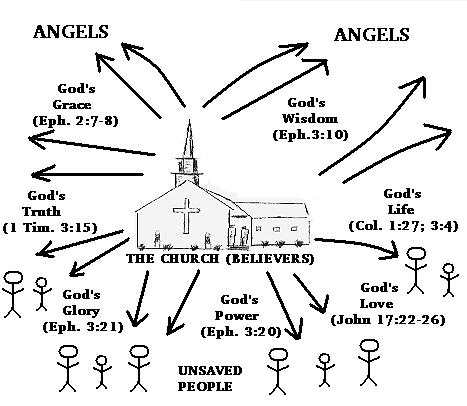 The Church is in the world to make known and to display the living God, before men and angels. This can be illustrated as follows:
