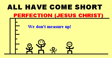 Compared to Christ, we do not stand very tall! Remember the basketball coach. He said that no one could be on the team unless he measured up to six feet tall. God says that no one can go to heaven unless he measures up to Jesus Christ! This means that none of us should go to heaven because we have ALL failed to measure up! (God knew that all men would all fall short, and so He devised a plan of salvation which makes it possible for believing sinners to be just as righteous as Christ, to be righteous "even as He is righteous" (1 John 3:7).
