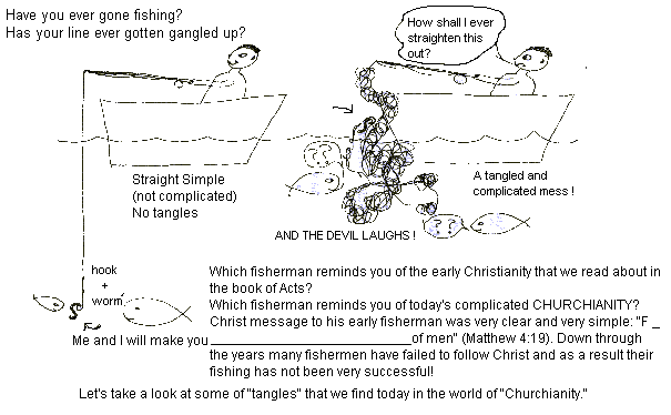It is not easy to untangle a messed up line (fishing line). It takes much patience and hard work to get that line back to the way it was in the beginning before it got tangled. In the same way it is not easy to get untangled from the MESS of CHURCHIANITY and to get back to the simplicity of Gods Word.