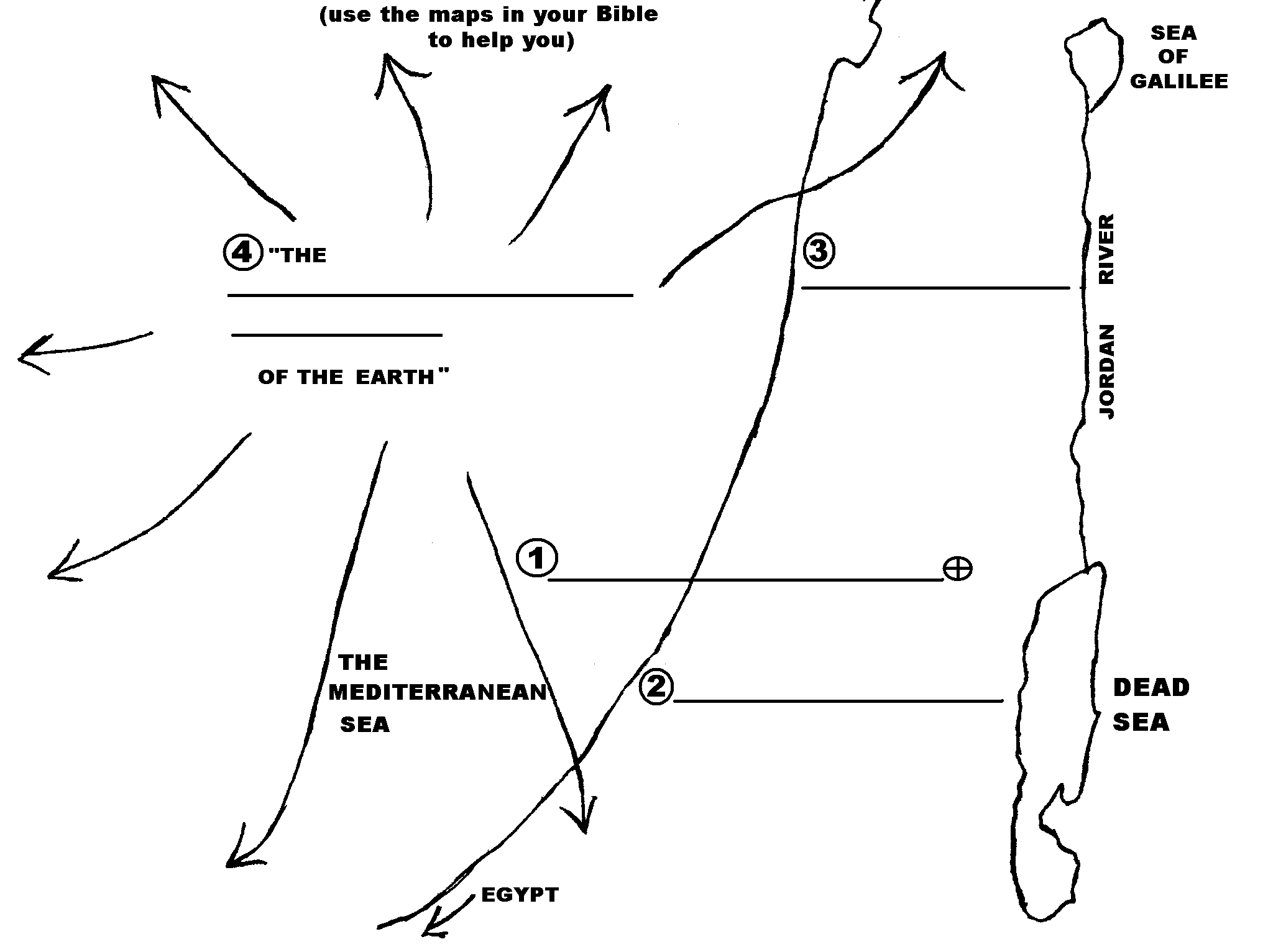 To help you to better understand Acts 1:8, please complete the following map by taking the place names found in Acts 1:8 and placing them on the map below: (You may use the maps in your Bible to help you.)