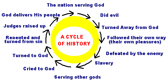 In the book of Judges this cycle is repeated again and again! What about you? Where are you on this cycle (on this circle)? Are you serving God or sin? Are you turning to God or away from God? What about your nation? Where is your country on this chart? Where is your country headed in the future?