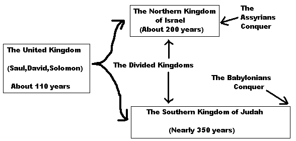 As the centuries passed the nation began to turn away from God. The kingdom of Israel was united under Saul and David and Solomon, but after the death of Solomon the kingdom was divided into two parts: 1) the northern kingdom of Israel (with its capital in Samaria); 2) the southern kingdom of Judah (with its capital in Jerusalem). The kings of the northern kingdom were very wicked and led the nation away from God. After about 200 years God judged the northern kingdom of Israel by allowing the Assyrian army to conquer the land and carry the people away as captives.