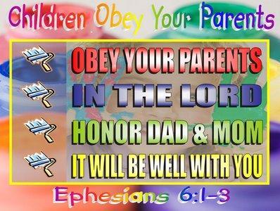 The Apostle Paul gave many commandments in his letters, but there was one commandment which was given especially to children (Ephesians 6:1 and Colossians 3:20): "Children, ____________ your parents." Not only must parents be honored, they must be obeyed!