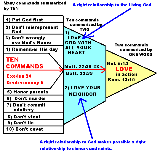Thus, mans duty towards God and towards his neighbor can all be summarized by ONE WORD: LOVE! See the chart below: