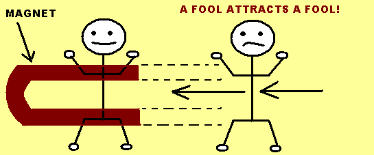 Actually, choosing the right kind of person as your friend is not as difficult as it may seem. It is very easy to get rid of the wrong kind of friends. All I need to do is to concentrate on being the right kind of person myself. For example, would a fool want to be a wise mans companion? _______ Would an evil men want a righteous man for a companion? ______ Would Cain want Abel for a companion? ______ Would the Pharisees want the Lord Jesus for a Companion? ______ When it comes to forming friendships, fools attract fools, wise men attract wise men, evil men attract evil men, righteous men attract righteous men, etc. Also wise men will usually REPEL fools. The fool will not normally want to be in the company of a wise man. What kind of friend are you attracting?