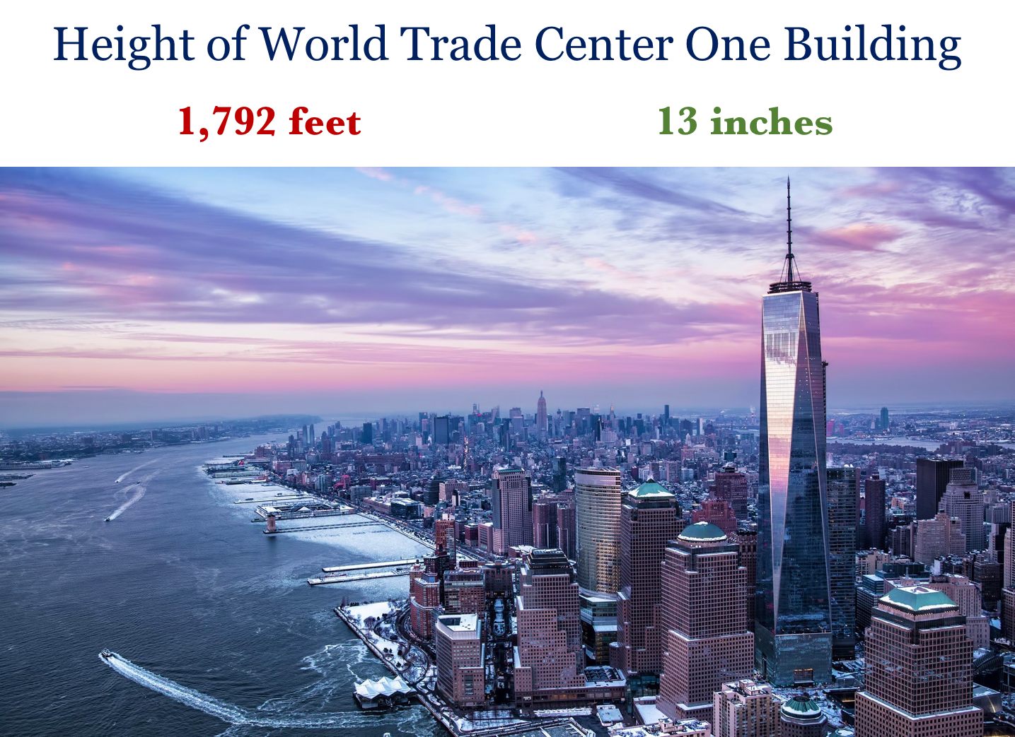 Let the evolutionary age of the earth be represented by the height of the World Trade Center One building (1792 feet). If that is the time scale, then man has only been here for 13 inches, according to evolution.