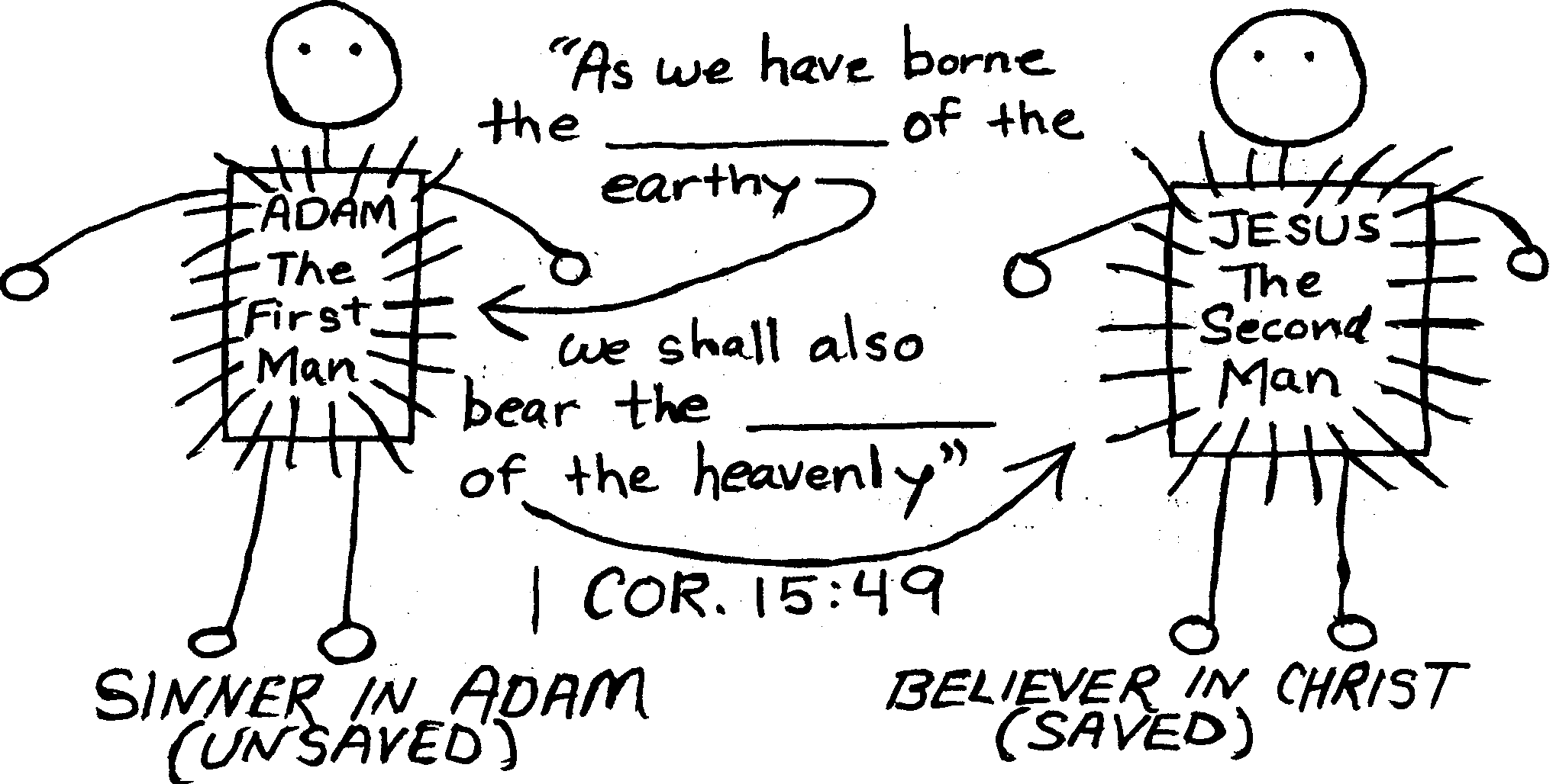 Every person is either IN ADAM (related to the OLD CREATION) or IN CHRIST (related to the NEW CREATION). Those who are IN ADAM perfectly reflect their father A_________. Those who are IN CHRIST are able to reflect the Lord Jesus (although they sometimes still reflect Adam). The believer has put on "the new man, which is renewed in knowledge after the ____________ of him that created him" (Colossians 3:10; see Ephesians 4:24-the new creation!). The following diagram may be of some help: