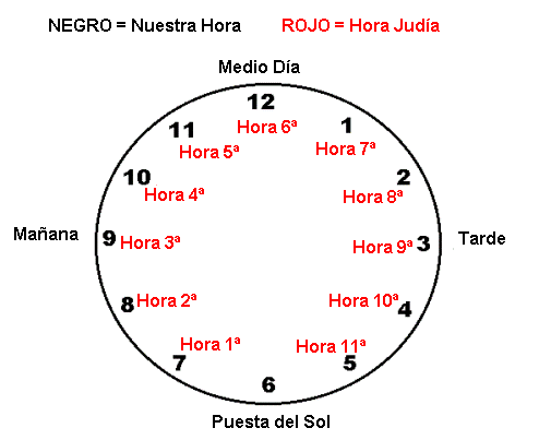 de nuestro horario y del horario judío. Lo que nosotros llamamos la hora