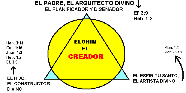 Cuando estudiamos la historia de la creación como es presentada en una progresiva revelación, descubrimos que hay tres Personas y las tres participaron en la creación. Este hecho es ilustrado más abajo: