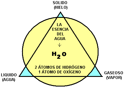 El AGUA aparece en tres formas diferentes: 1. HIELO 2. LÍQUIDO 3. VAPOR. En cualquiera de estas formas es AGUA y está hecha de la misma SUSTANCIA (H2O). De igual manera, Dios es tres PERSONAS diferentes (1. Padre; 2. Hijo; 3. Espíritu Santo), pero cada una de estas PERSONAS es DIOS, y cada una es de la misma ESENCIA. La esencia o sustancia de Dios es todo lo que Dios es.