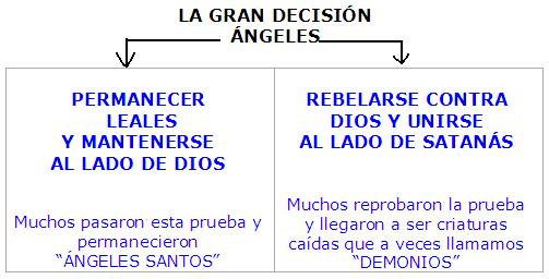 Los ángeles tuvieron que tomar una decisión importante y eterna. Muchos de ellos tomaron una mala decisión y seguirán al diablo al infierno. Adán tuvo que hacer una gran decisión, y como todos sabemos, él hizo una mala decisión y cayó en pecado. Hoy hombres y mujeres y niños y niñas tienen que tomar una gran decisión: