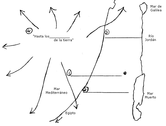 Para ayudarle a entender mejor HECHOS 1:8, favor complete el siguiente mapa (use como ayuda los mapas de su Biblia)