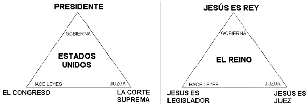 El CONGRESO dicta las leyes. El PRESIDENTE, como el líder de la nación, guía nuestra nación, defiende la constitución, y sirve como comandante en jefe de todas las fuerzas armadas. La CORTE SUPREMA tiene que velar que las leyes se cumplan y se interpreten correctamente, a la luz de la Constitución, etc. (no es tarea de la Corte Suprema hacer las leyes). En la edad del Reino, Jesucristo será la CORTE SUPREMA, el CONGRESO y el PRESIDENTE, todo en Una Persona: “Porque el SEÑOR es nuestro _________, el SEÑOR es nuestro __________________, el SEÑOR es nuestro _________ (Isaías 33:22). ÉL es el Juez perfecto, el Gobernante o Presidente perfecto y ÉL hará leyes perfectas.