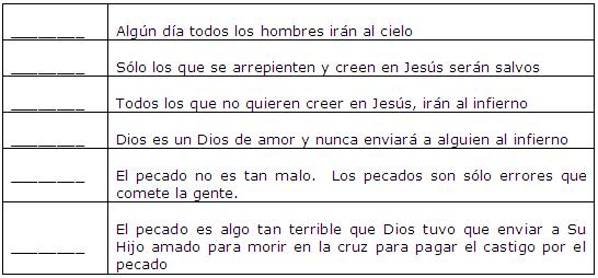 Lea lo siguiente y ponga una letra “D” si ésto es lo que el pecador DESEA
