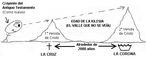 Deberíamos notar que en esta presente era de la iglesia (que ha durado como 2000 años) no fue revelada en el Antiguo Testamento. El judío del Antiguo Testamento miraba hacia el futuro distante y veía la cima de una montaña que era la venida del Mesías y la gran edad el reino. No se daba cuenta que lo que estaba viendo era en realidad dos cimas de montañas con un valle entremedio: