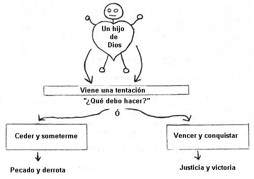 Como podemos ver por estos ejemplos, cuando una persona es tentada, tiene dos elecciones. Se ilustra como sigue: