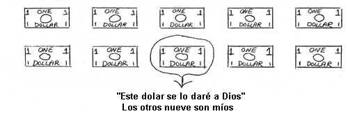 ¿Deberíamos dar a Dios un dólar y guardar los otros nueve para nosotros? ¿Pertenece un décimo de nosotros a Dios o le pertenecemos por entero? Dios quiere que nos demos cuenta que todo lo que tenemos le pertenece a ÉL. Todos los diez dólares le pertenecen a Él y yo quiero ser muy cuidadoso en cómo gastaré cada uno de ellos. Quiero ser un buen administrador en mi uso del dinero. Quiero usarlo bien y sabiamente en la presencia de mi Dios y Salvador. “Señor, cada centavo que tengo es Tuyo. Ayúdame a usarlos de la mejor manera posible”.