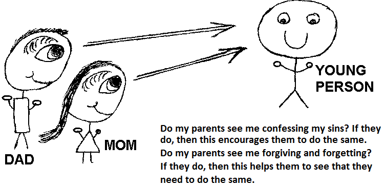 It is true that Mom and Dad are not perfect. They have their flaws and faults and failures, just like we all do. But as I see Mom and Dad handling their sins in the right way, then this encourages me to do the same: