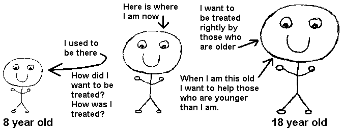 You must remember that you were once where you see someone else. You were once a younger person who needed help from older people. Someday you will enter High School (or even Junior High School). How will you want the older ones to treat you then?